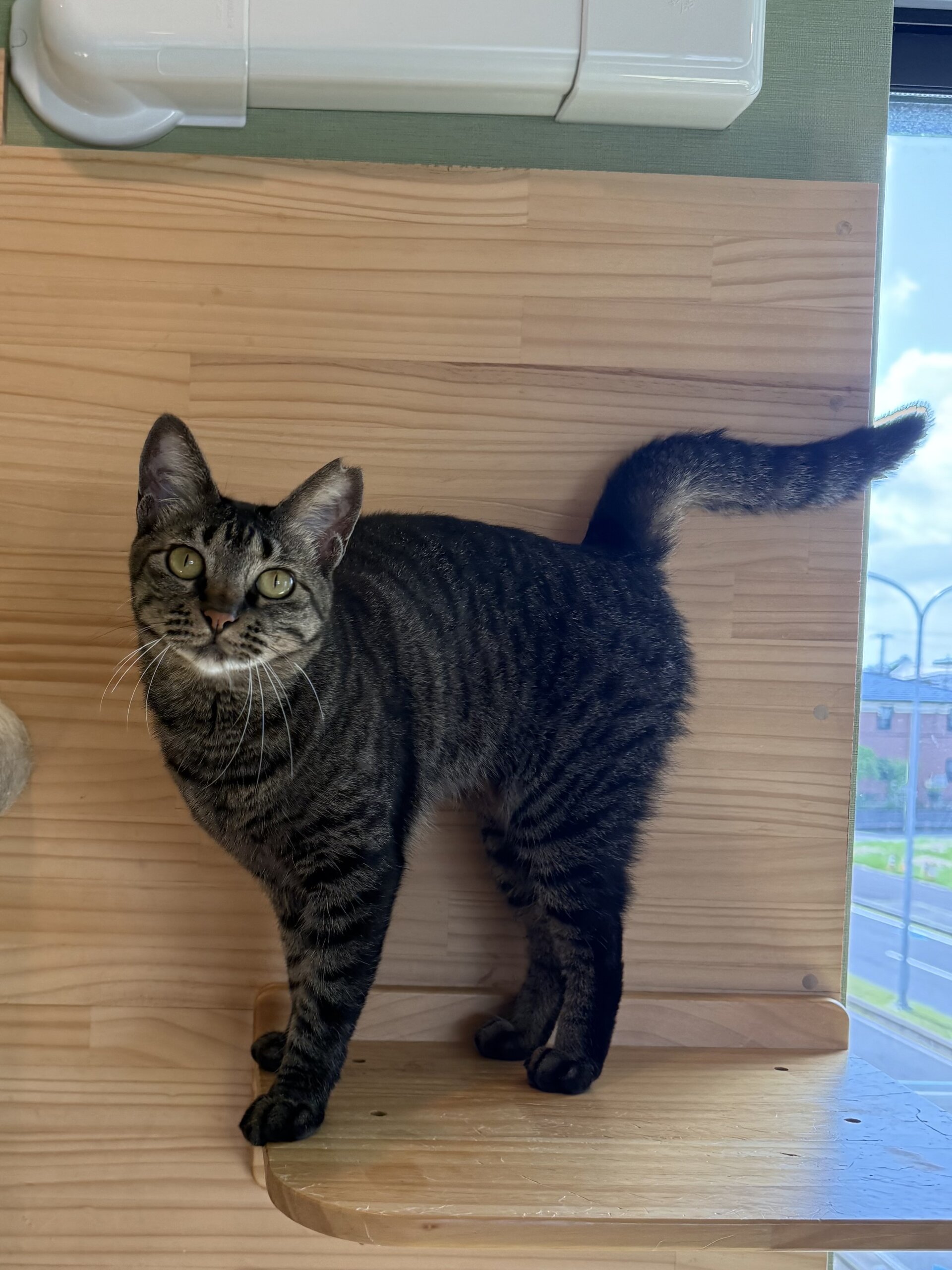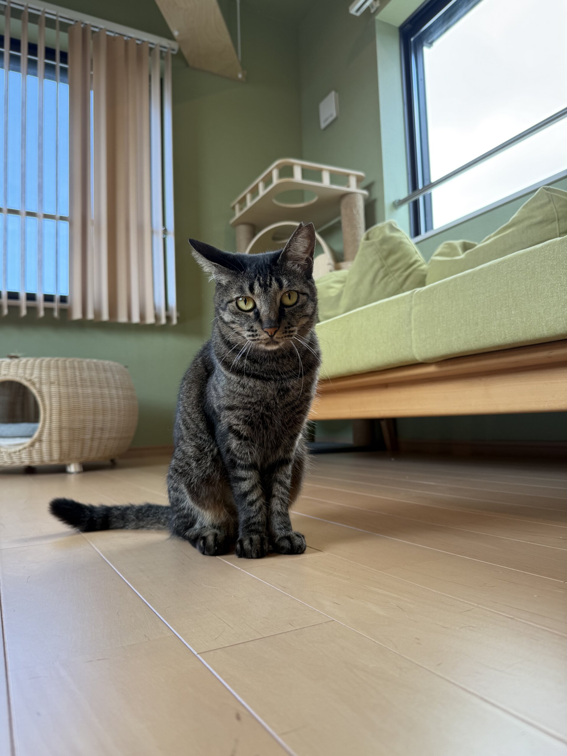せまいところで退屈そうだし、少し慣れてきた感じもあるし、もともとよしおたちを育てていたのでもふもふ1Fへ🐈