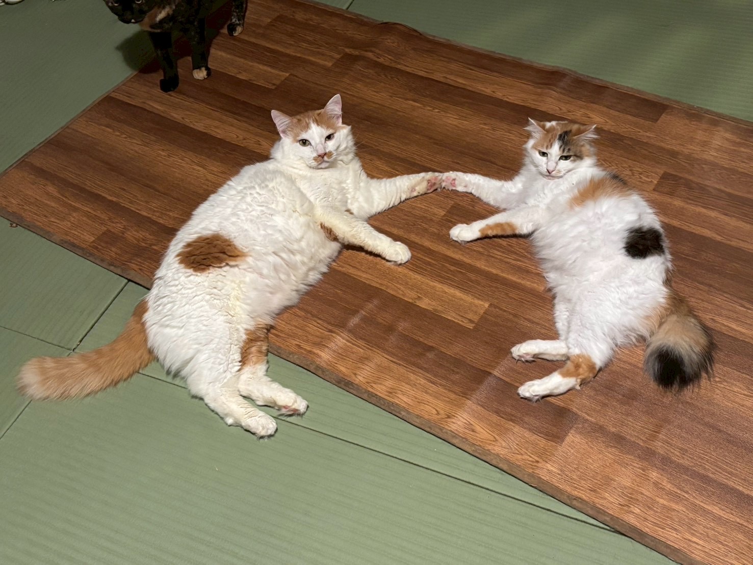 クリクリのお目目と少し毛が長い三毛さんです!ビビりさんで、ニンゲンはまだちょっと警戒。でもすぐ近くで上目使いで見つめて(観察して?)きたり、可愛い女の子!小柄ですが、人一倍食いしん坊です〜