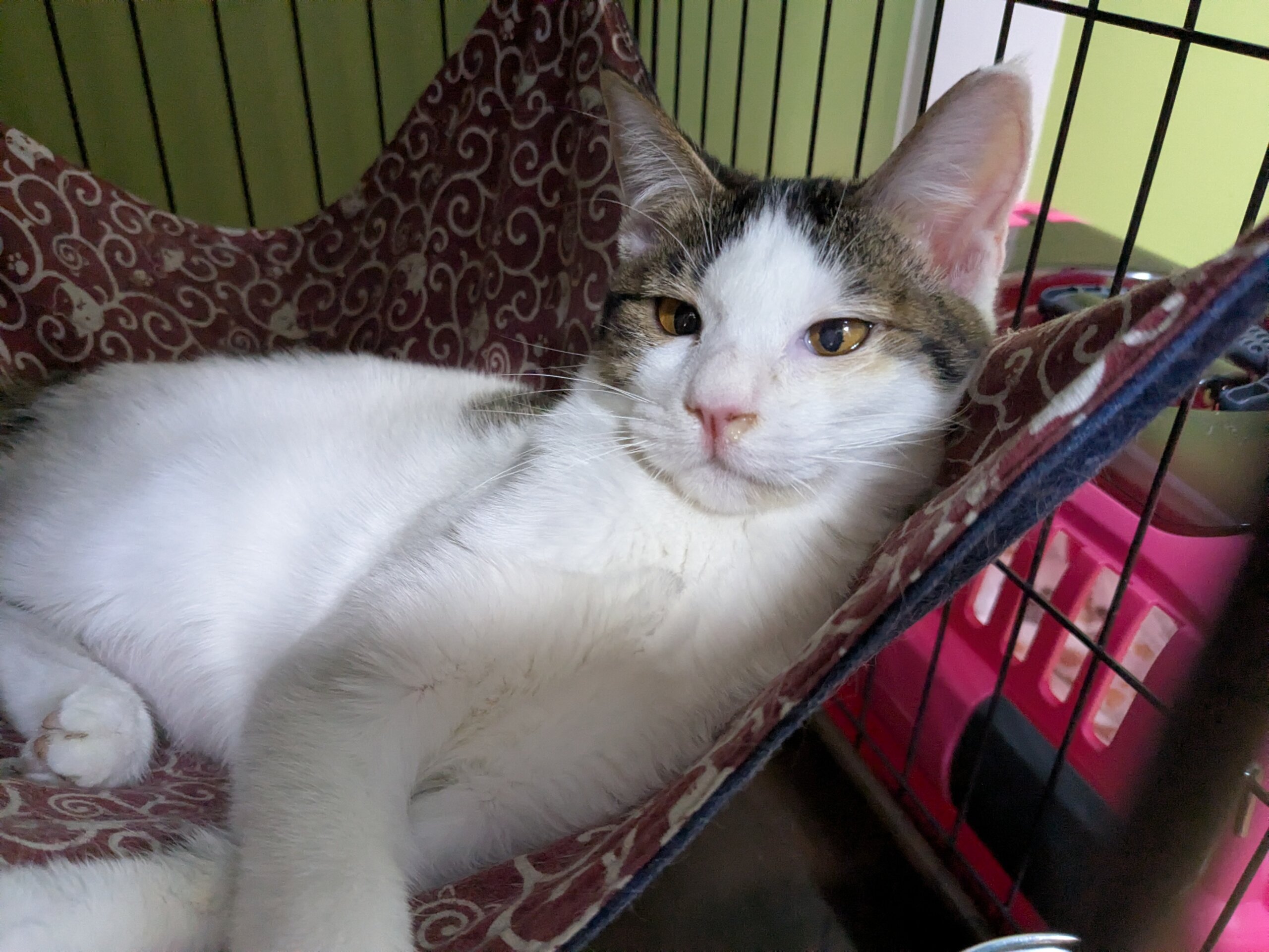 高齢者が家の中で猫が増えてしまったと所有権放棄で保健所に収容。斜視などあるためネコリパに依頼があり受入れ