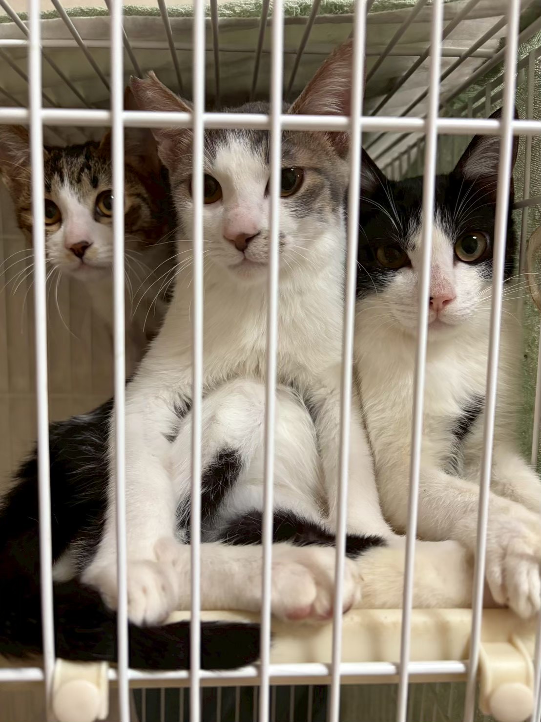 事前連絡なしで1ヶ月後にシェルターに3匹を持ち込み。シオン、レイ、アリアと命名。