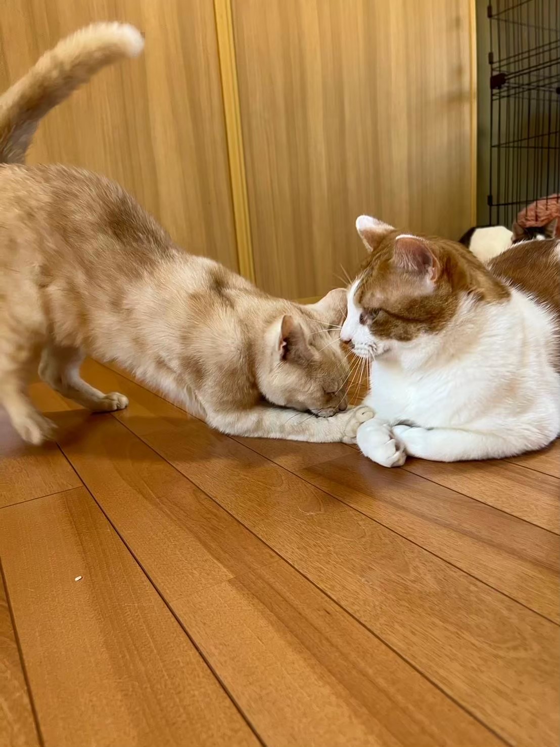最初は人見知りもしますが、人に近づいてきたり、膝にのったり、時々抱っこもできるほどの甘えん坊さんです。りんご部屋🍎でもみんなと仲良し。