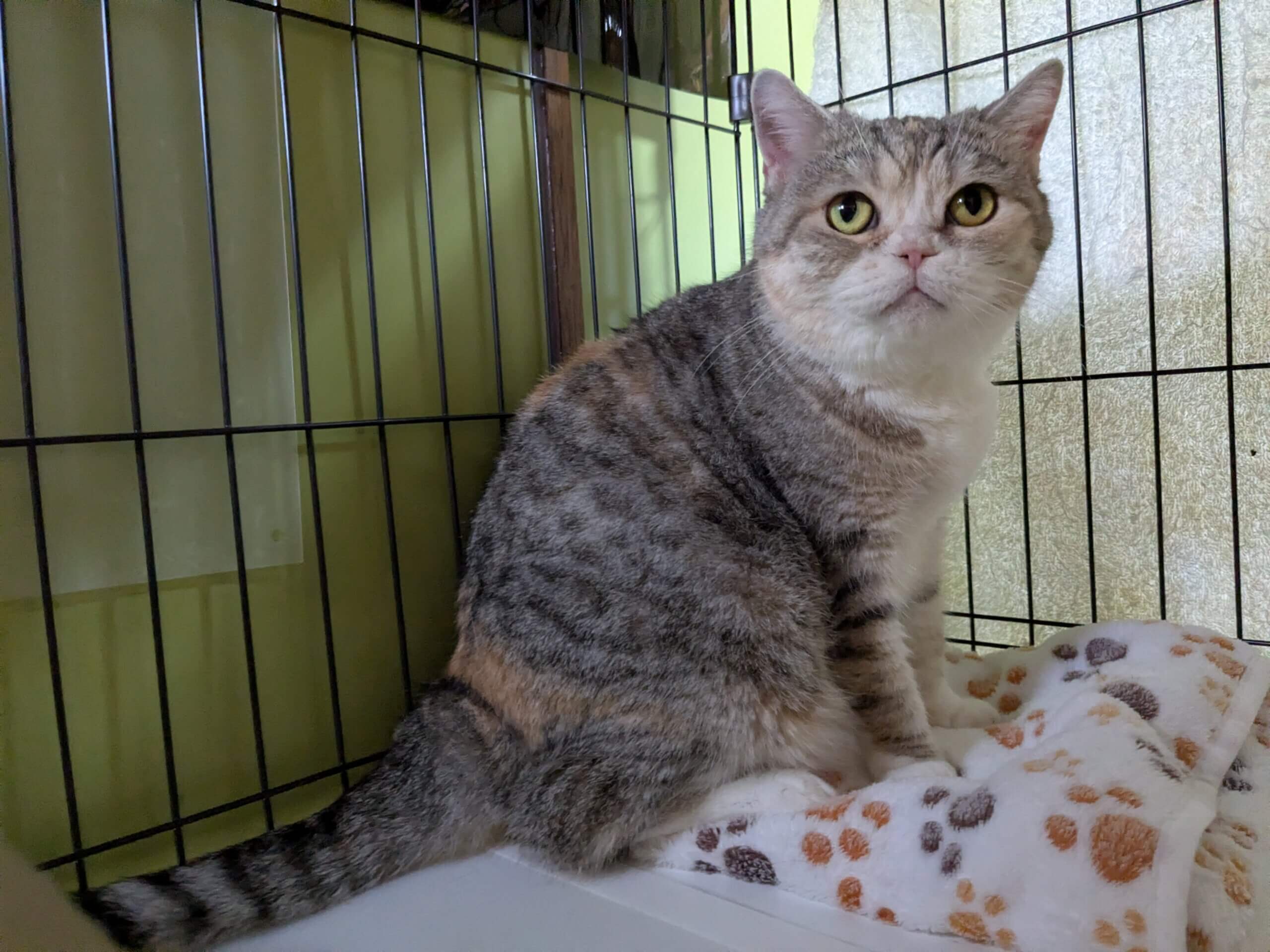薄い縞三毛のスコティッシュ9歳です。