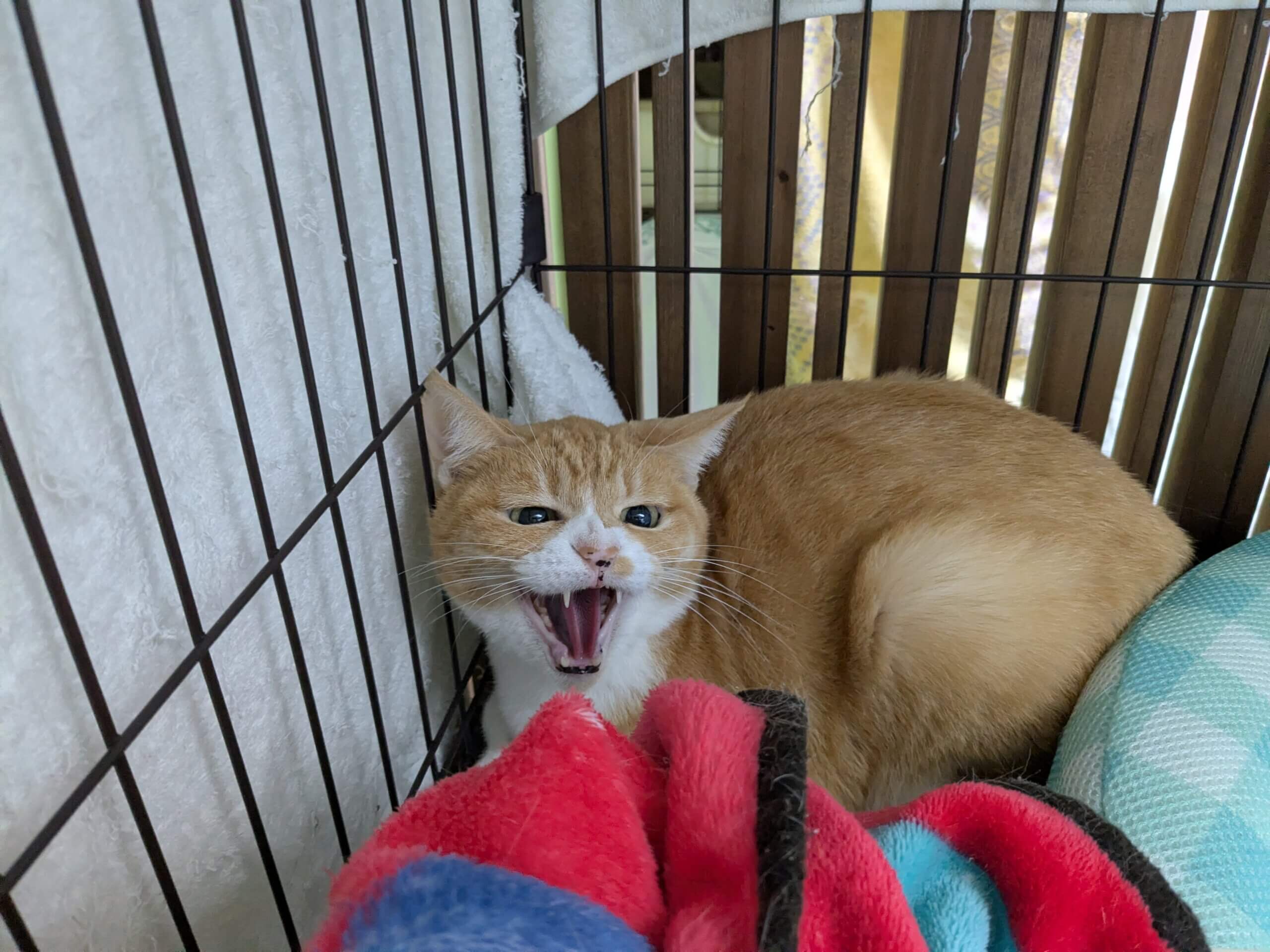 以前より猫生加入の飼い主さんが、交通事故にあってしまい、後遺症のため飼育困難になり引き取ることになりました。