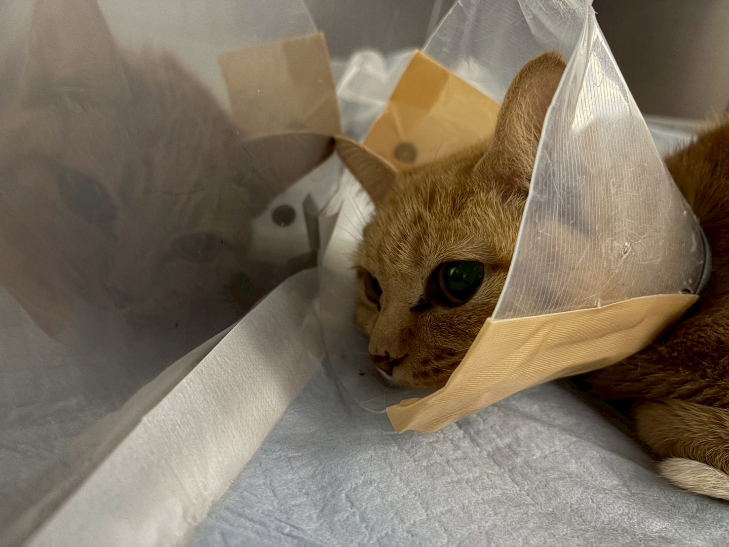 横たわっている猫がいるとの連絡があり、保健所に収容。その後、脱水がひどく体温も低いとネコリパに連絡があり、急いで引き出しました。首輪はしていましたが迷子登録はなく、保健所でも飼い主を捜索。保護日が【ビスケット】の葬儀の日だったので、名前を取りビスクと命名。