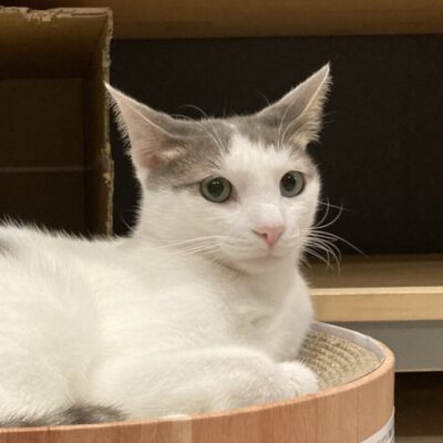グレーのハチワレ模様がかわいい男の子です。