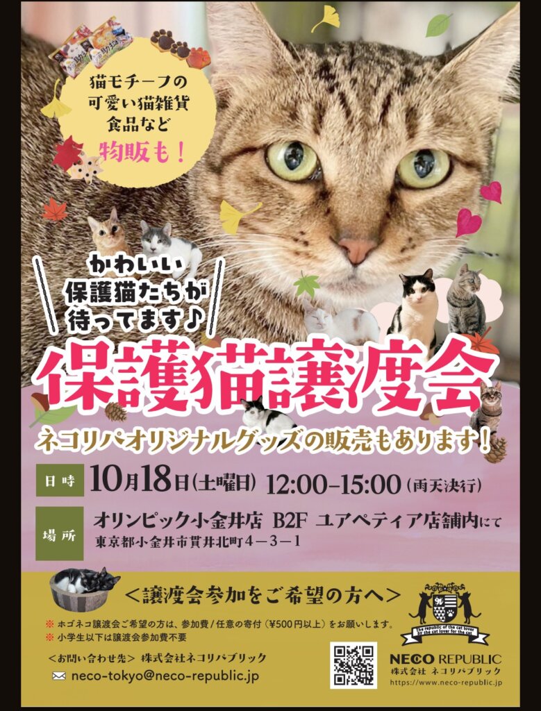 そこに在籍している個性豊かな猫たちに会える譲渡会を、オリンピック小金井店 ユアペティア小金井店舗内で開催いたします!