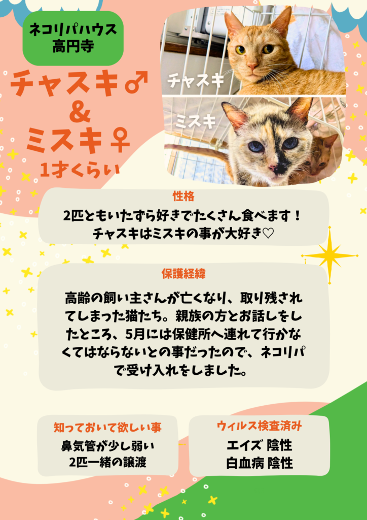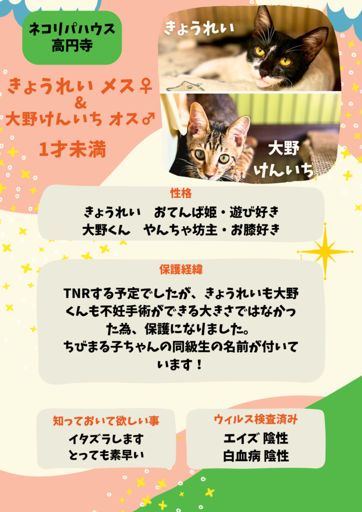 (※1歳未満の子猫については、2匹以上での引き取りをお願いしております)