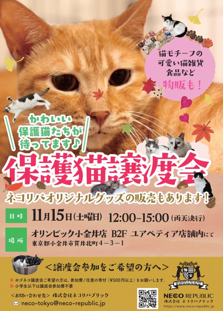 当日は、可愛い猫たちとの出会いだけでなく、お買い物も楽しめます♪