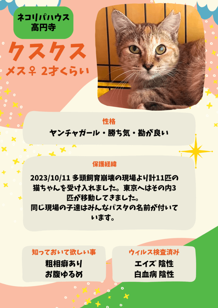 (※1歳未満の子猫については、2匹以上での引き取りをお願いしております)