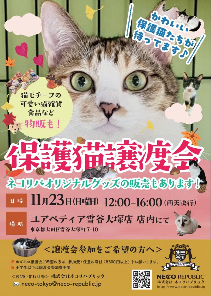 そこに在籍している個性豊かな猫たちに会える譲渡会を、ユアペティア雪谷大塚店で開催しております!