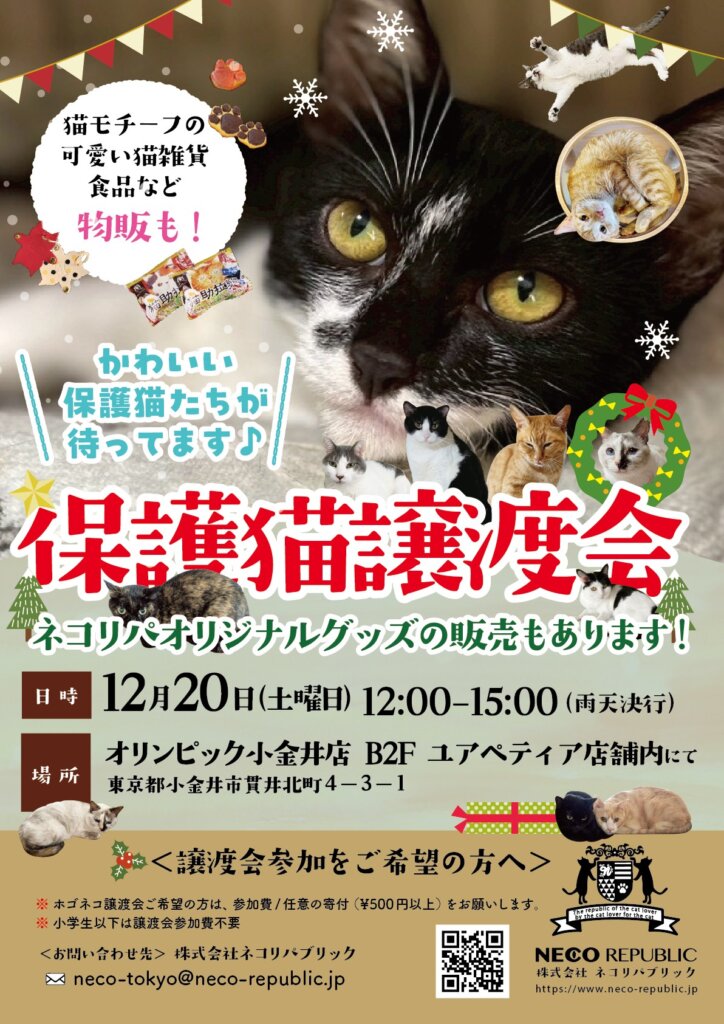 当日は、可愛い猫たちとの出会いだけでなく、お買い物も楽しめます♪