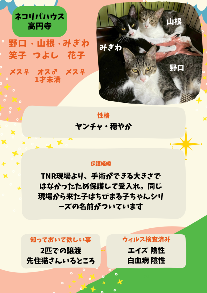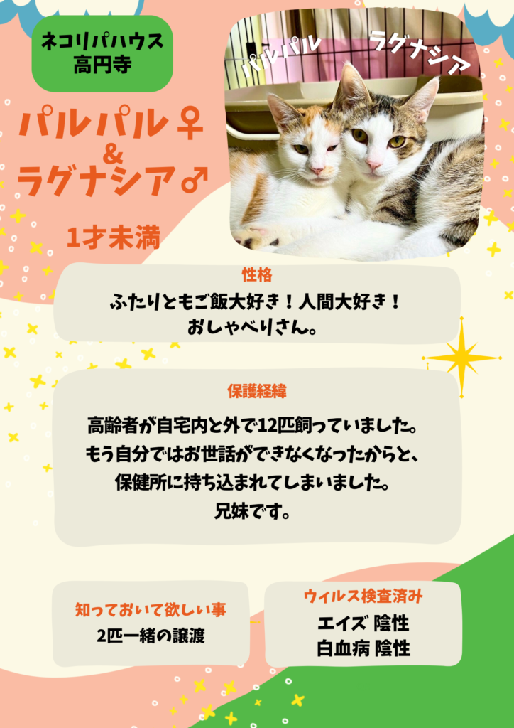 (※1歳未満の子猫については、2匹以上での引き取りをお願いしております)