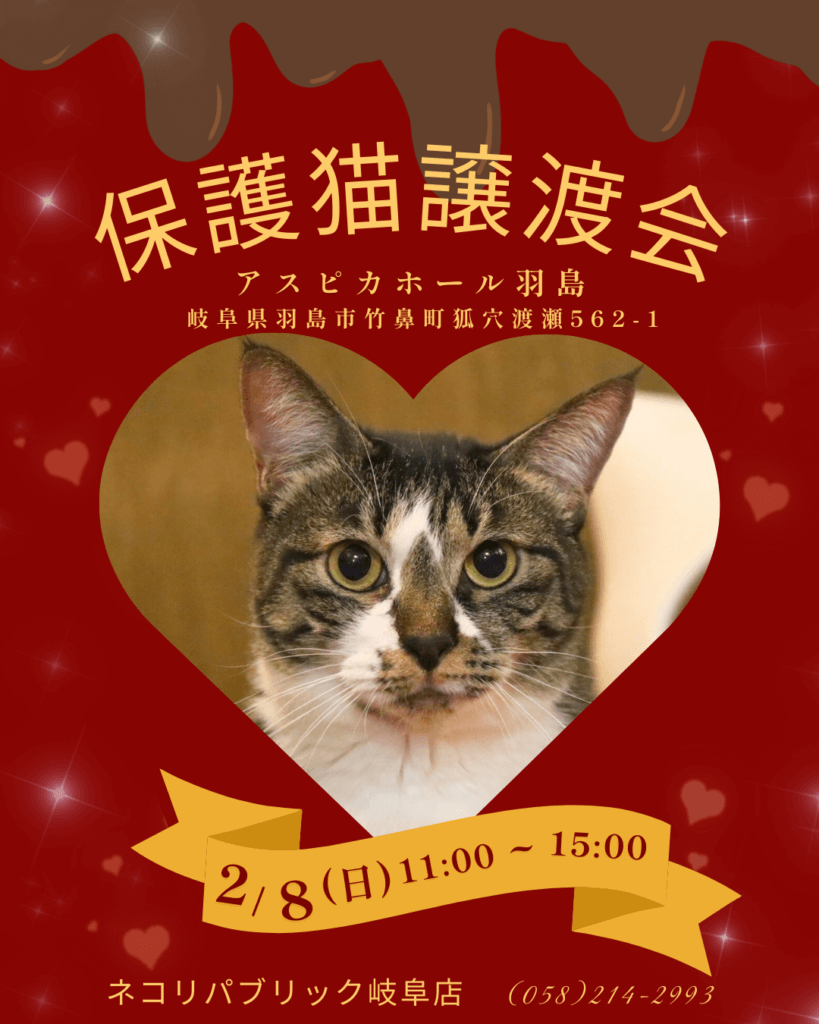 2月8日(日)、アスピカホールでネコリパブリックの保護猫譲渡会を開催します🐾🐱
