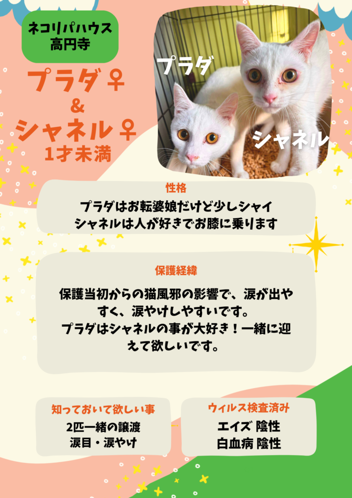 (※1歳未満の子猫については、2匹以上での引き取りをお願いしております)