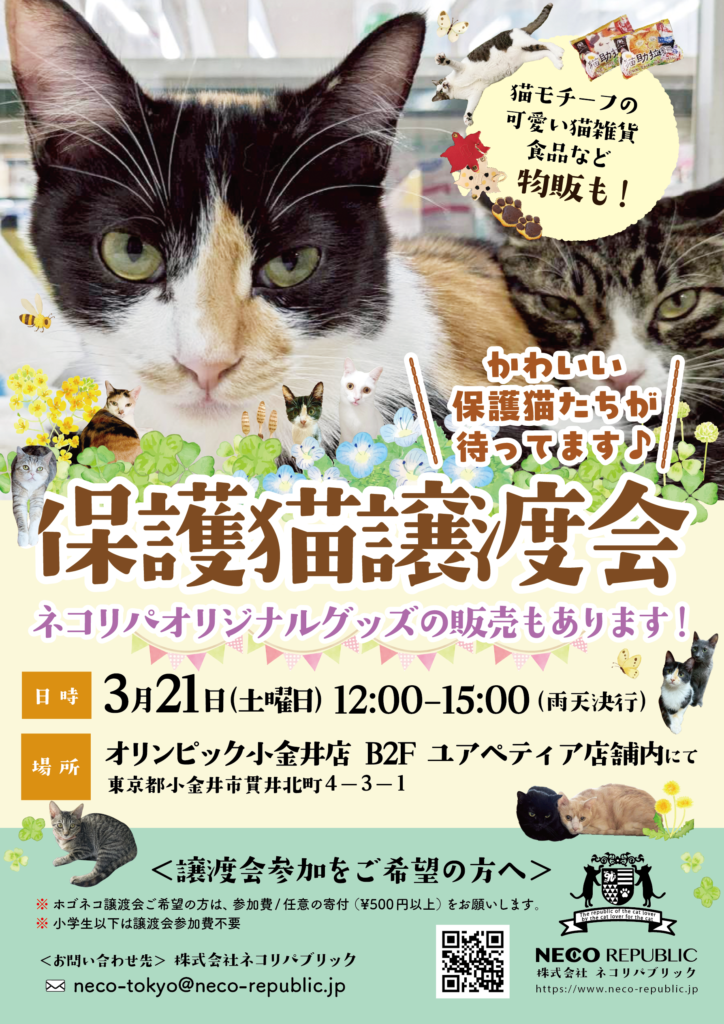 当日は、可愛い猫たちとの出会いだけでなく、お買い物も楽しめます♪
