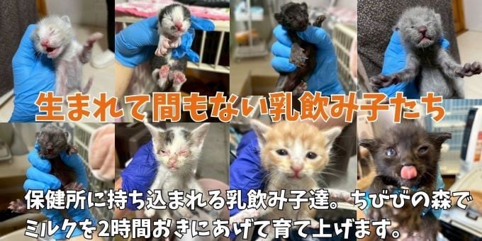 あと少しで命が消えそうな猫・怪我をして動けなくなっている猫・生まれたばかりのへその緒がついたまま段ボールに入れられた子猫