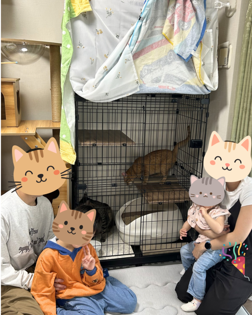 この日をずっと楽しみにしてくださっていたご家族。大きなケージの横にはたくん遊べるキャットタワーや、お母様お手製のキッチンガードまでご準備くださっていて、たくさんの愛情を感じるお届けとなりました。