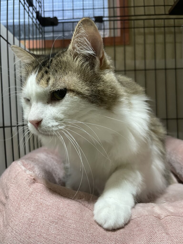 他の地域猫3匹がご飯を食べに来られなくなってしまったので、お家の子としてお迎えしましたが、先住猫と血が出るくらいの喧嘩をしてしまったため引き取り依頼をされました。