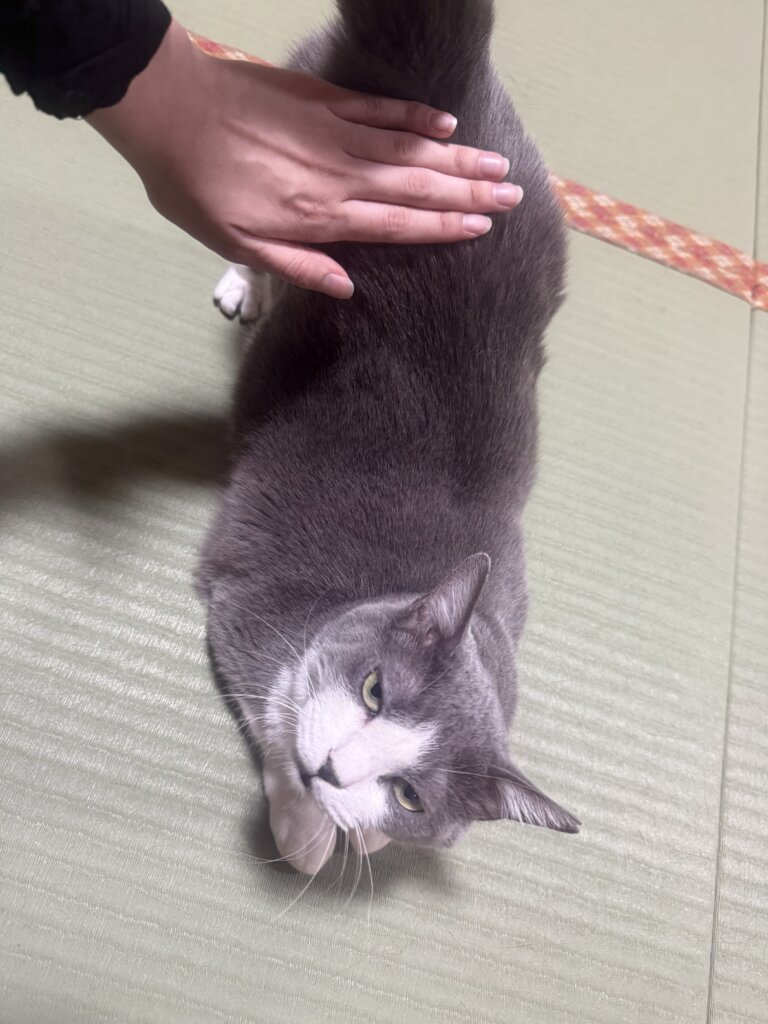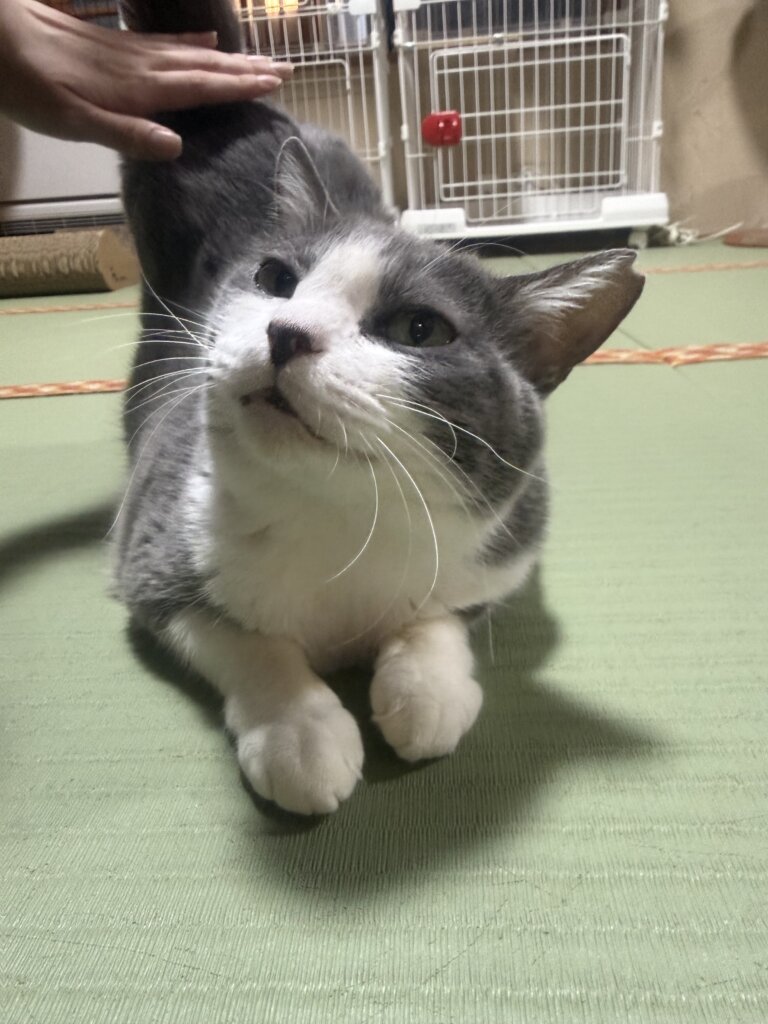 プッシュ【お茶の水店】 【お茶の水】〜プッシュ〜 2025.10.29 (wed) 東京お茶の水店 Share 今日の猫ちゃんはプッシュです!いつも自分から来てくれて可愛い💕 おしりトントンしてと要求してきます☺️ まだもの足りなそうです…😅 前の記事を見る カテゴリ一覧へ戻る プッシュ【お茶の水店】 在籍ねこ 性別女の子 在籍店東京お茶の水店 毛色グレー白 毛の長さ短毛 Comment 2023/12/20 引っ越しをし外でご飯をあげていた子達 ネコリパに入国。 7年間近く外でご飯をあげており、他にも餌やりさんがいるので全員ではないですが、それでも8匹いる。 それぞれが自由に生活していたので、特に仲良くはないです 鼻だけ黒くて、押したくなるからプッシュと命名 ぐーと親戚っぽいけど、外では別行動 きゅるるん、そろり、じょぼぼ、オンジ、おしゃ、ころり、グーと同じ現場です 鼻に黒い模様があり、見るとつい「押したいなぁ…🥺」と思うので、プッシュです😂 お外にいた時は、いつもアパートの階段で待ち伏せしてました。 その時からだいぶ幸せたっぷりつまった体になったので、首は掴めません😅 抱っこは嫌いですが、お尻トントン高い族です🙋🏻♀️ いつもはケージの上にいましたが、撫でて欲しいと「くるるるるる」と鳥みたいな声を出しておりてきました🐈 高いところにいる(同じ高さの目線で)時は、お触り🆖でした! なんでも食べます🤗 11/22カフェデビューしました さらに!5/26〜東京に移動してずっとのお家を探します♪ おすすめの記事 日々のこと プッシュ【お茶の水店】 2025.06.16 (mon) 【お茶の水】〜プッシュ〜 日々のこと プッシュ【お茶の水店】 2025.09.29 (mon) 【お茶の水】〜プッシュ〜 人気の記事 イベントレポート 2020.04.06 (mon) 緊急募集!ネコリパブリック運営継続月額サポーター!あなたのちょっとで猫助け! 猫コラム 2020.03.01 (sun) りんご猫とは、、 猫コラム 2021.06.07 (mon) りんご猫とは、、 猫エイズについて