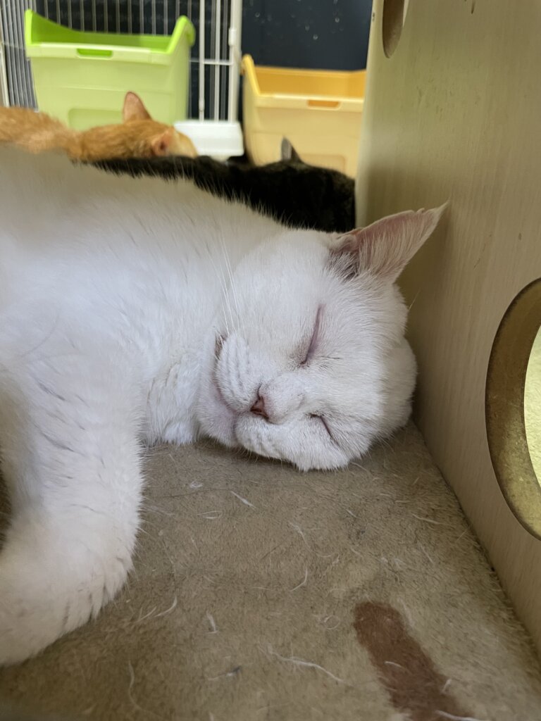 お父さん🍎【お茶の水】 【お茶の水】〜お父さん〜 2025.11.25 (tue) 東京お茶の水店 Share 寒くなった最近はホットカーペットでよく寝ているお父さん😊❄️ 周りにたくさんの猫たちが集まっています🫂 お父さんは愛されてますね🥰 前の記事を見る カテゴリ一覧へ戻る お父さん🍎【お茶の水】 在籍ねこ 性別男の子 年齢不明 在籍店東京お茶の水店 毛色白 毛の長さ短毛 人馴れ度のんびり Comment 5〜6年前から保護主さんがお世話をしてくれていて、近所のお家も何件か渡り歩いていた地域のボス猫さんでした。 お父さんという名前は、保護主さんの飼っている親子猫のお父さんではないか?!ということで、そう呼んでいたそうです。 角度によっては怖い顔に見えますが、福の神のような人間のような…とっても存在感のある猫さんです。 おすすめの記事 日々のこと キジ介🍎【お茶の水】 2025.08.19 (tue) 【お茶の水店】〜お父さん・キジ介・とらお〜 日々のこと お父さん🍎【お茶の水】 2025.02.20 (thu) 【お茶の水〜お父さん〜】 日々のこと お父さん🍎【お茶の水】 2024.11.20 (wed) 【お茶の水】〜お父さん〜 人気の記事 イベントレポート 2020.04.06 (mon) 緊急募集!ネコリパブリック運営継続月額サポーター!あなたのちょっとで猫助け! 猫コラム 2020.03.01 (sun) りんご猫とは、、 猫コラム 2021.06.07 (mon) りんご猫とは、、 猫エイズについて