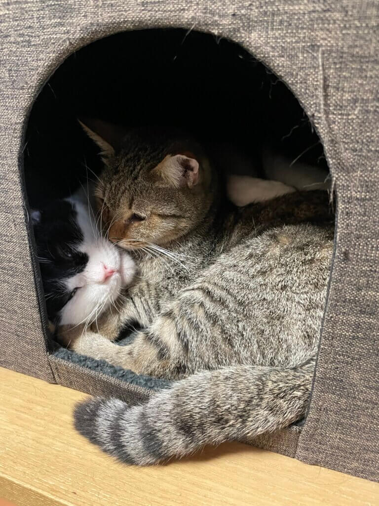 くのとグラタンが一緒に寝ていました😪