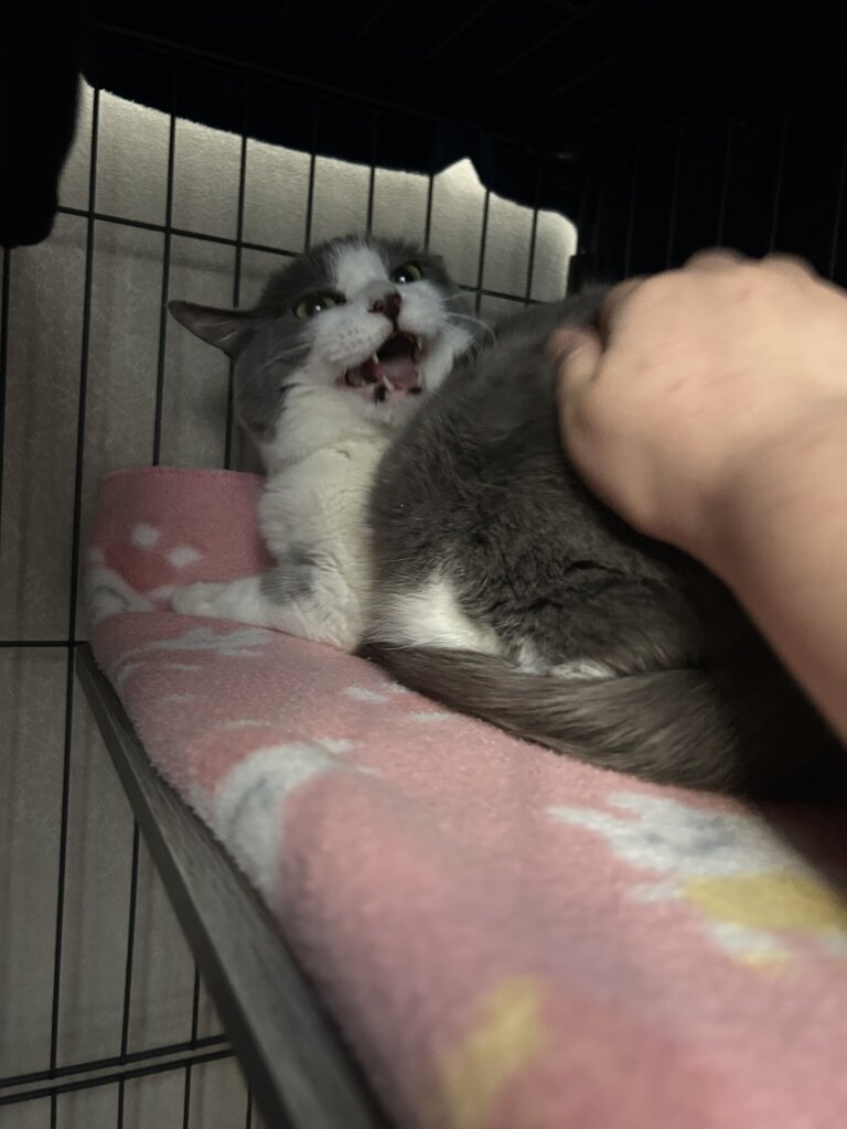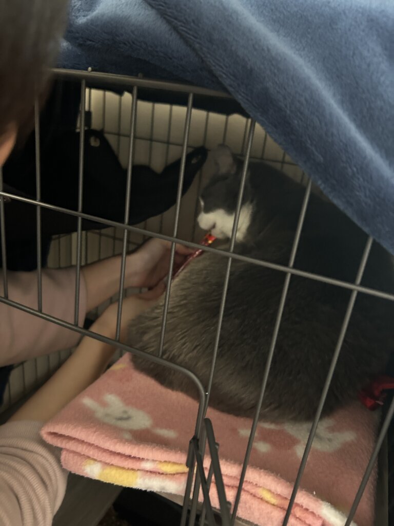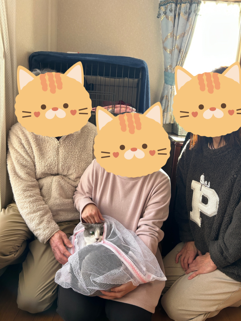 固まりながらも里親様がちゅーるをあげるとペロリと完食!