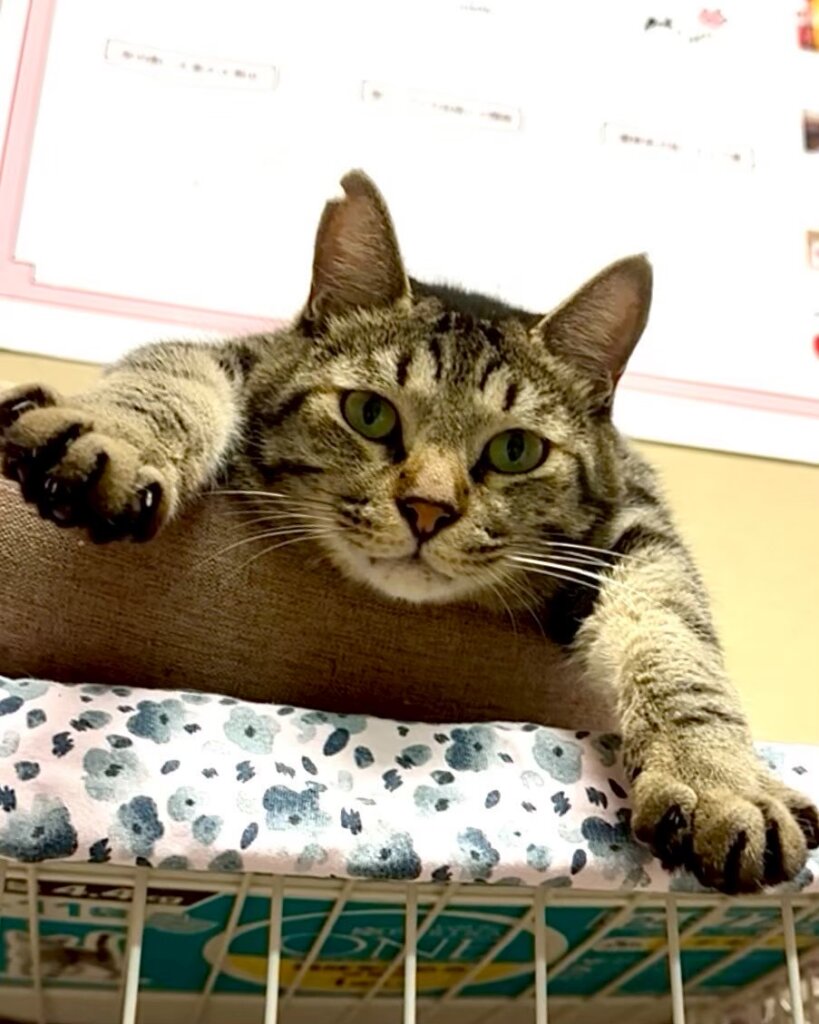 会社敷地内で増えすぎてしまった猫たちの中から保護されたとらおくん。