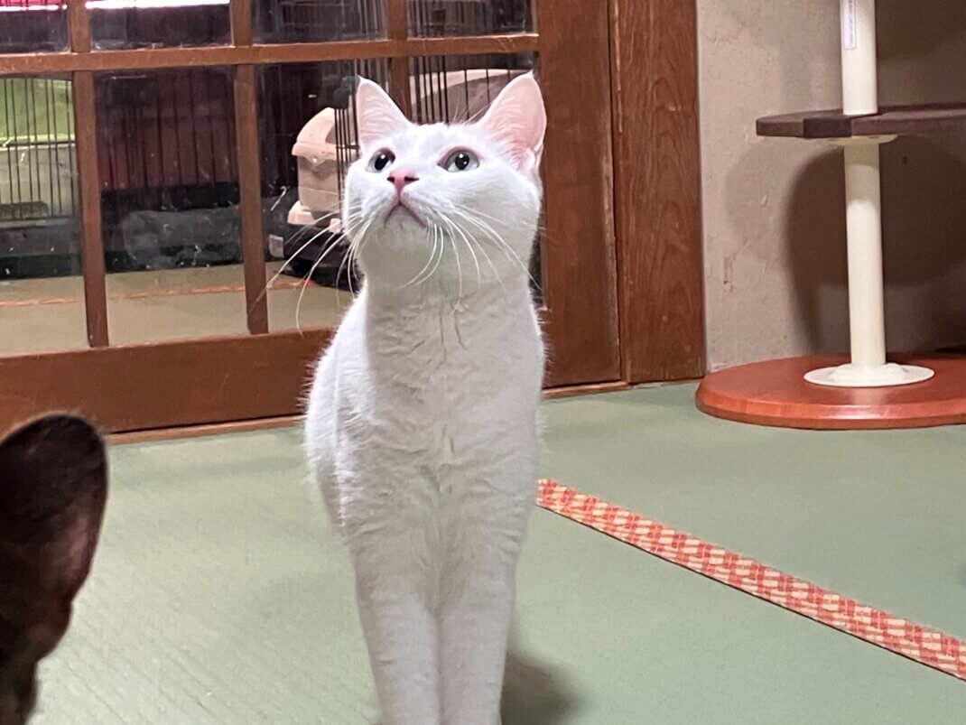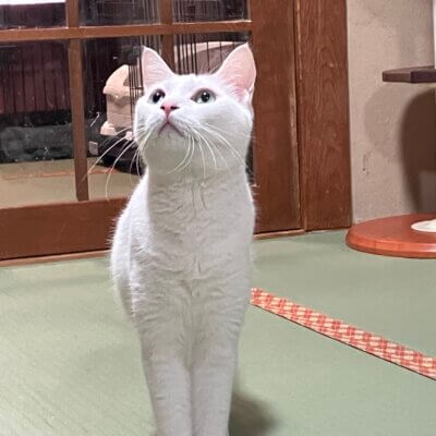 控えめだけど人に撫でてもらうの大好きな白猫「出雲」くん。