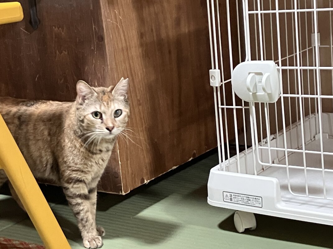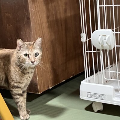 お客様の持っている猫じゃらしを高い所からじーっとみています👀