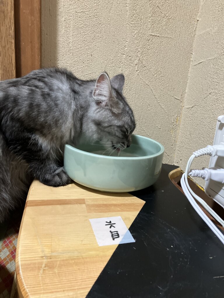 元気いっぱい走り回った後、お水をたくさんゴクゴク。