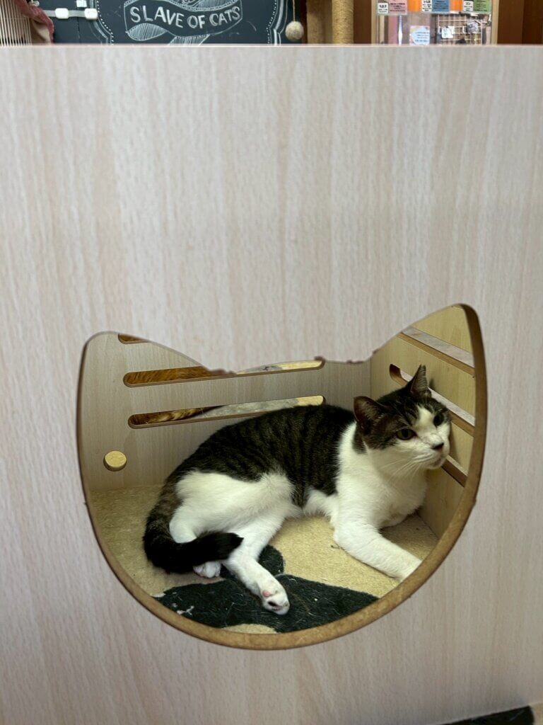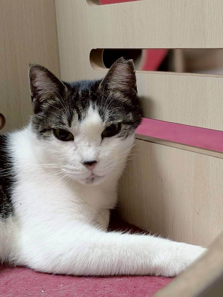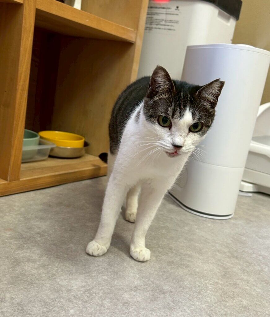 まだ人馴れしておらず、近付くとシャー!と言ってしまいますが、しつこくしなければパンチはして来ない、控え目な猫さんです。