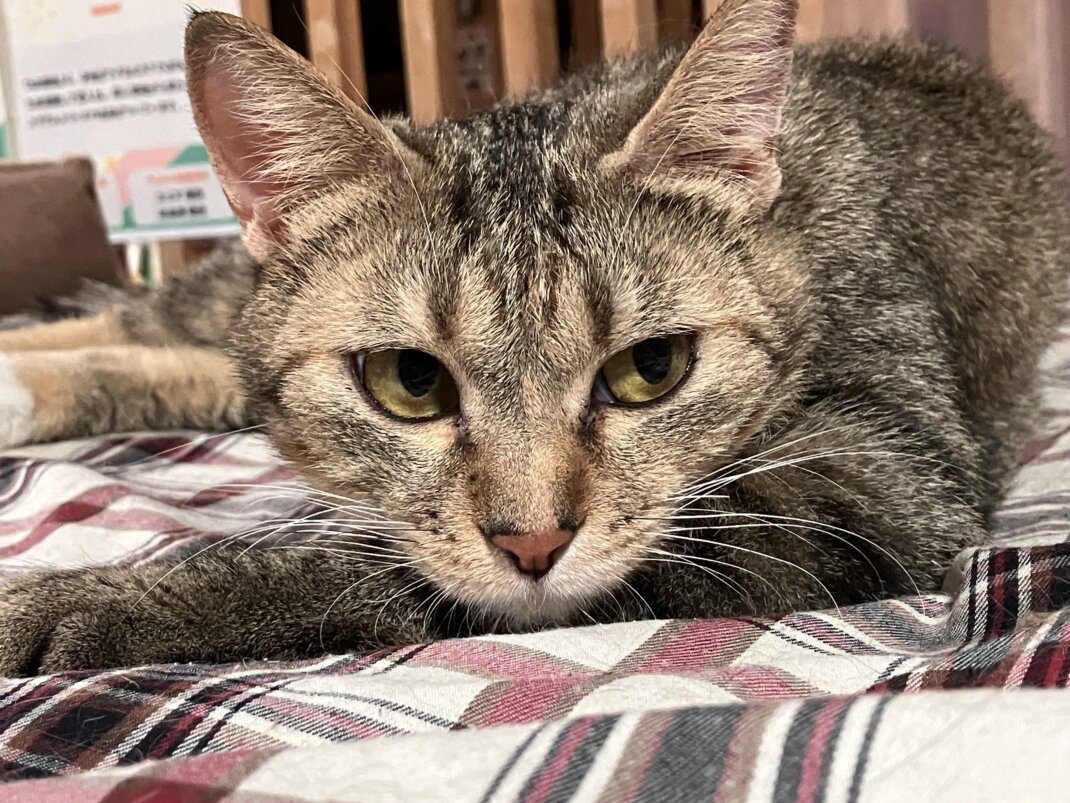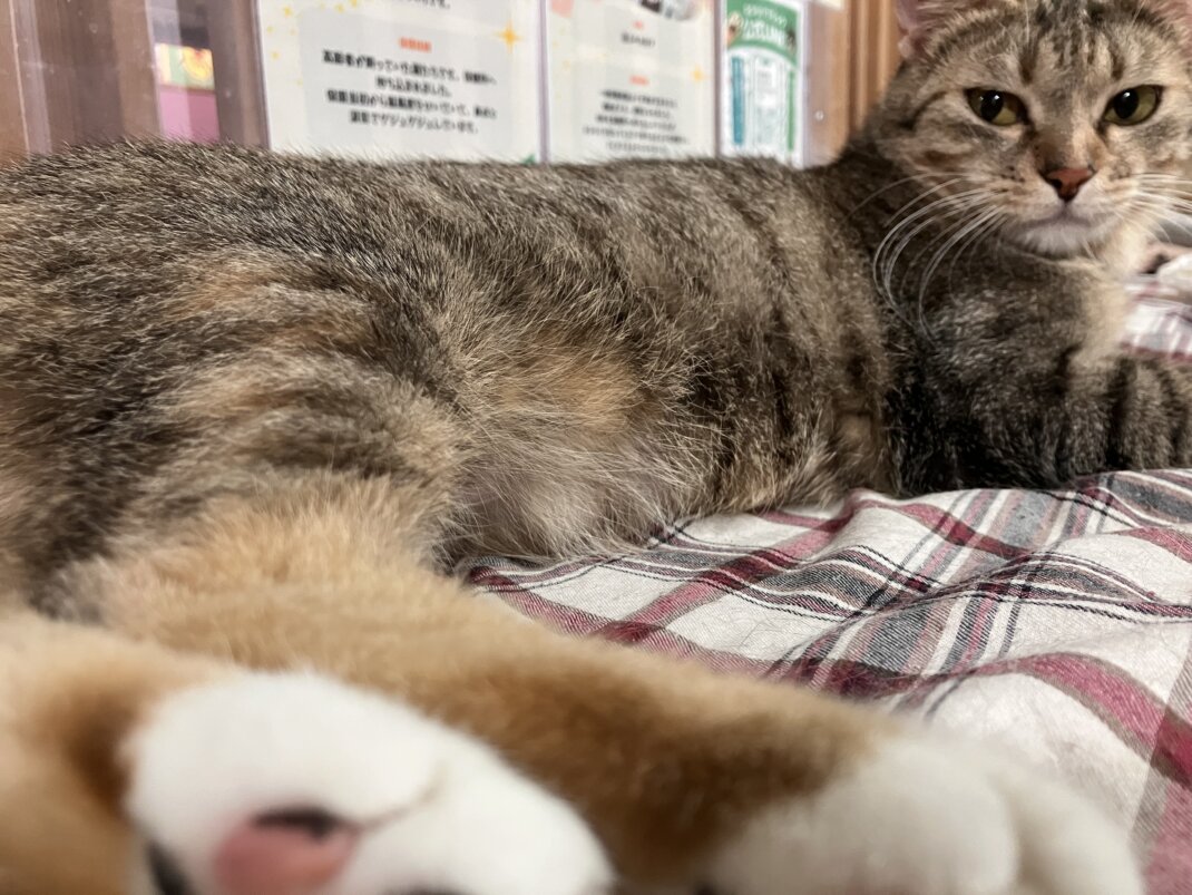 可愛い後ろ足を撮ろうと思ったら「なにやってるのよ」と、ジーッと見てきています👀