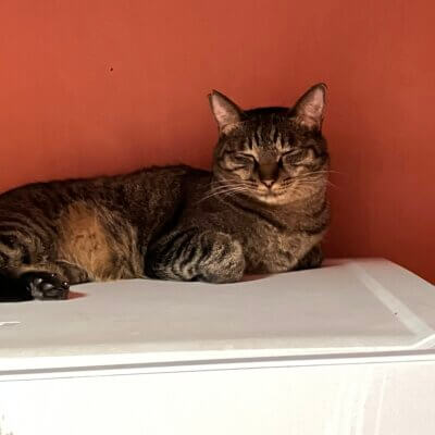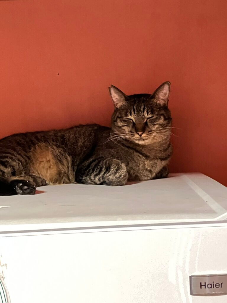 今日は冷蔵庫の上でのんびり中。