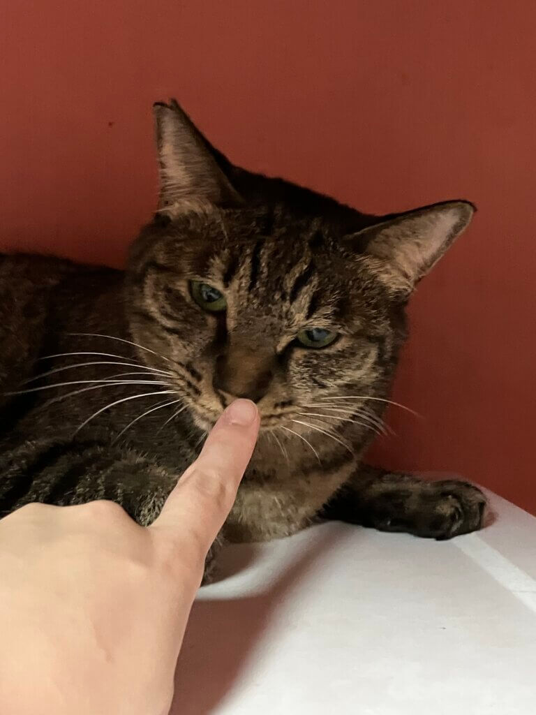 「あっち行ってくれにゃ」と言わんばかりのこの表情です😂