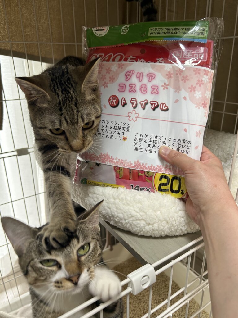 里親様は、武蔵小金井の譲渡会でダリア&コスモスに出会ってから、毎月、譲渡会に会いに来てくださっていました。