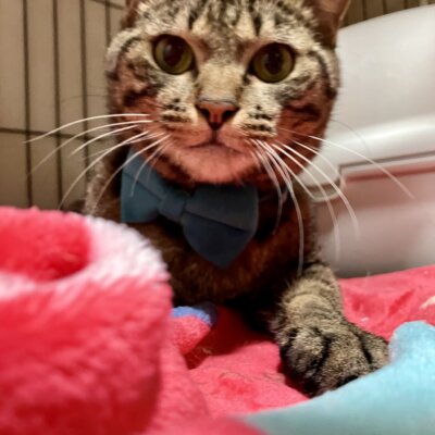 青の蝶ネクタイがチャームポイントの甘えん坊「クリムゾンスマッシュ」くん。