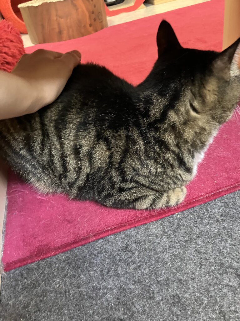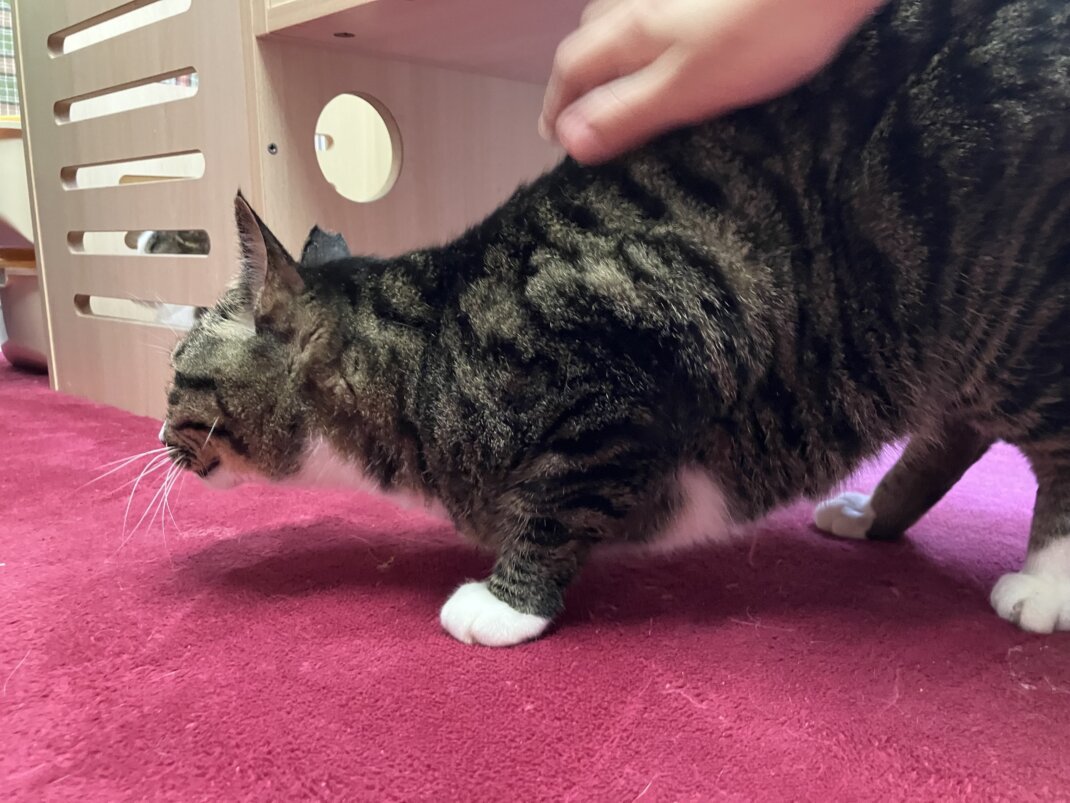 前から手が来るとちょっと怖がってしまいますが、お尻側からなでなでしてあげるととっても喜びます🩵