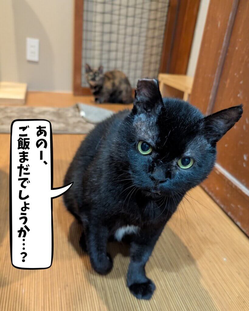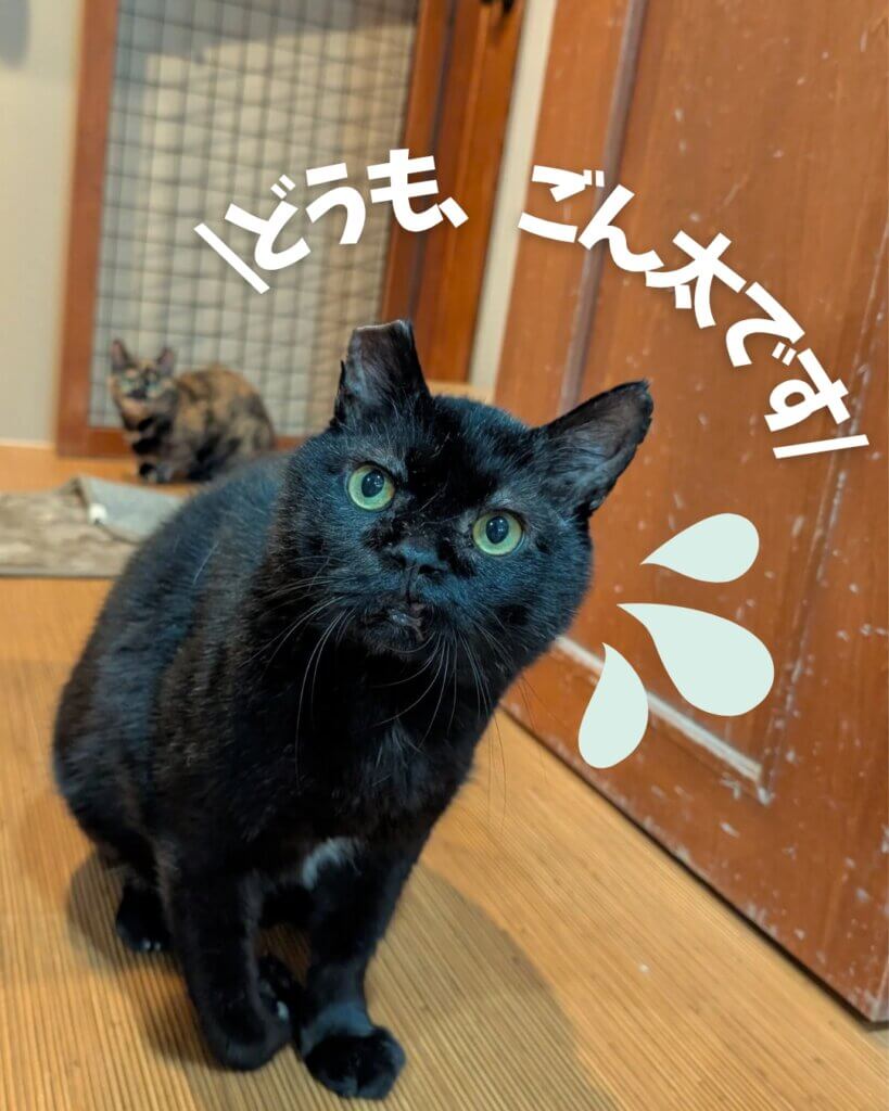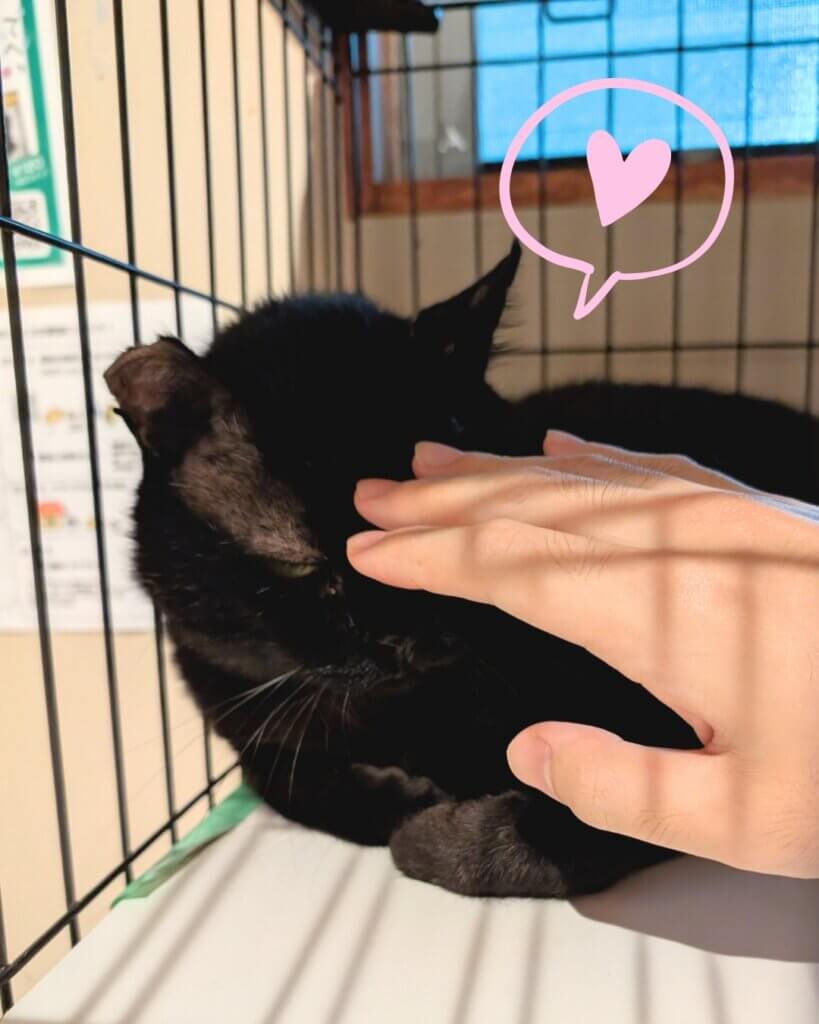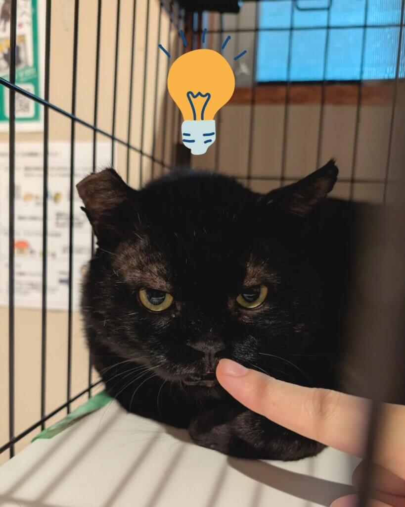 怪我をした状態で現れたため保護となりました。怪我の状態がひどく断尾となりました。大きい体とは裏腹にちょっと繊細なハートの持ち主です。ナデナデもできます。右手をあまりつきませんが、癖のようで骨に異常はありません。猫との相性◎