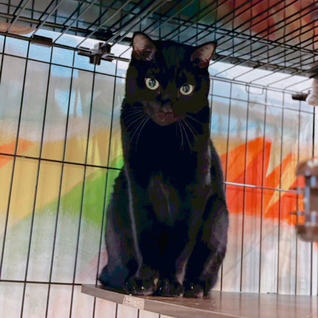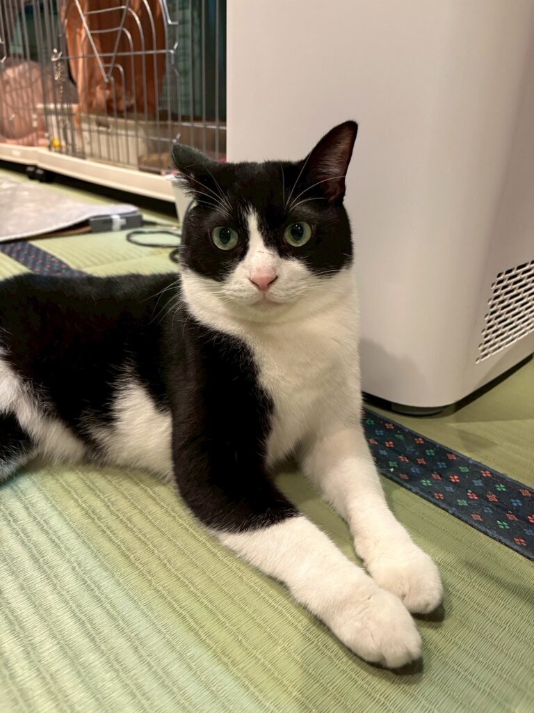 マーレと一緒にお外で暮らしていました。少しずつ人に慣れ、足にスリスリしたり、へそ天で甘える姿も見せるように。その様子に心を動かされた方が、保護して里親を探そうとしてくださいました。しかし、ご自身の持病のこともあり、継続が難しいとのことで、当店に里親探しのご依頼をいただきました。人馴れ抜群です。