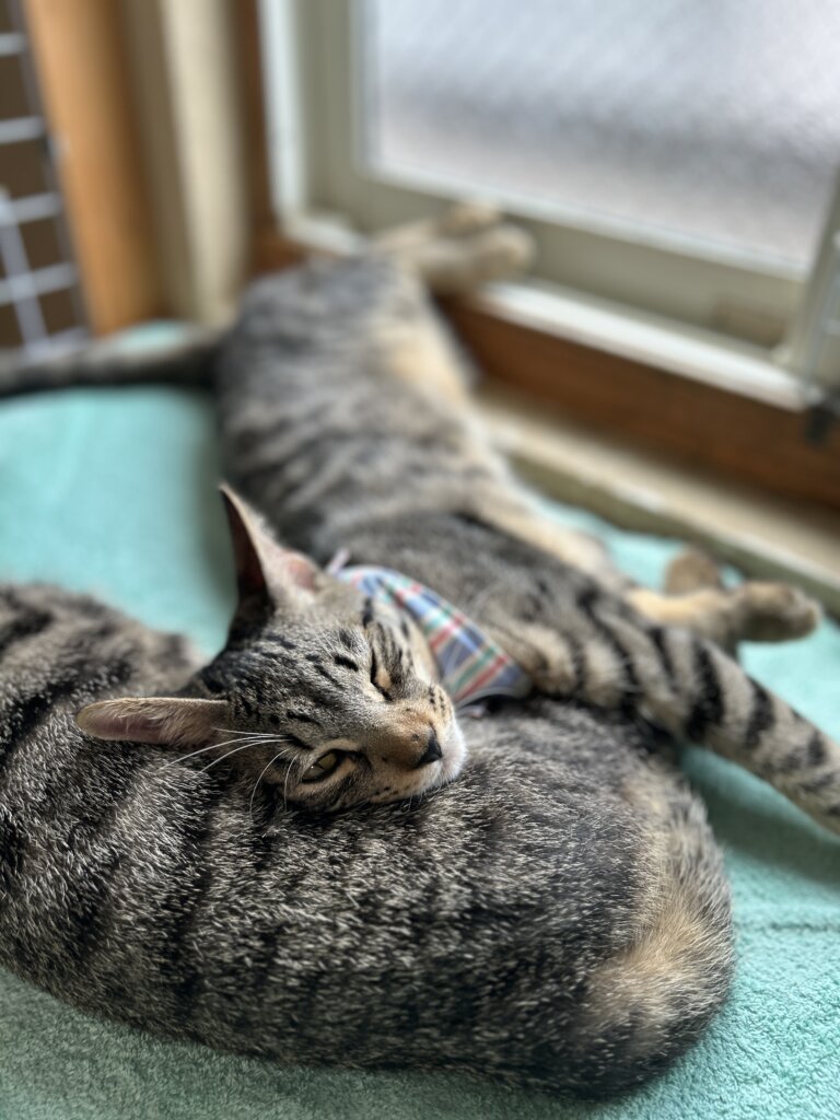 兄妹のケパちゃんのお尻を枕にしているガビくん🤭