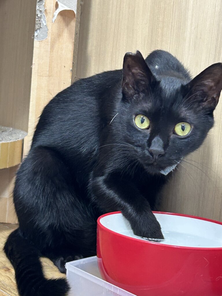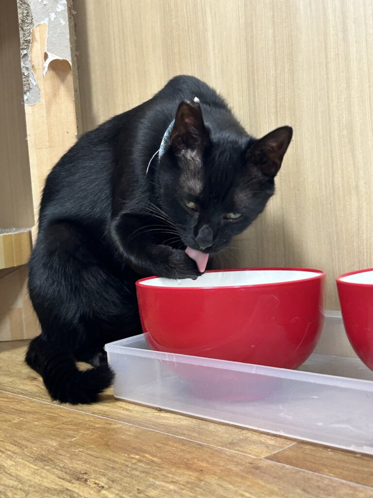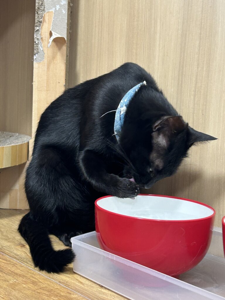 チュロ【谷中店】 【谷中店】〜チュロ〜 2025.09.25 (thu) 日々のこと Share チュロくんの、最近の水の飲み方がかわいいです。 前足で水をすくって、ペロっと舐めるスタイル💧 『この飲み方、変かな!??』と言いたげなチュロくんでした😊 次の記事を見る 前の記事を見る カテゴリ一覧へ戻る チュロ【谷中店】 在籍ねこ 性別男の子 年齢1-3才 在籍店東京谷中店 毛色黒 毛の長さ短毛 人馴れ度マイペース 人馴れ度デレデレ Comment 飛騨市の神岡で保護された子です。 一度はTNRされましたが、地域の住民から石を投げられたり、大きい声で怒鳴られるなどの劣悪な迷惑行為があり、ネコリパで保護することになりました。 小脳に障害があり、頭が大きく揺れたり、歩くときに落ち着きがないように見えますが、普通の子と生活は変わらずできます。 常に鳴いて甘えてくるスリゴロさんです。 抱っこも少し落ち着きはないけどさせてくれます。 おすすめの記事 東京谷中しにものぐるい店 チュロ【谷中店】 2024.10.03 (thu) 【谷中店】~チュロ~ 東京谷中しにものぐるい店 チュロ【谷中店】 2024.11.20 (wed) 【谷中店】〜チュロ〜 東京谷中しにものぐるい店 チュロ【谷中店】 2025.07.06 (sun) 【谷中】〜チュロ〜 人気の記事 イベントレポート 2020.04.06 (mon) 緊急募集!ネコリパブリック運営継続月額サポーター!あなたのちょっとで猫助け! 猫コラム 2020.03.01 (sun) りんご猫とは、、 猫コラム 2021.06.07 (mon) りんご猫とは、、 猫エイズについて
