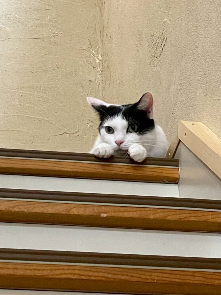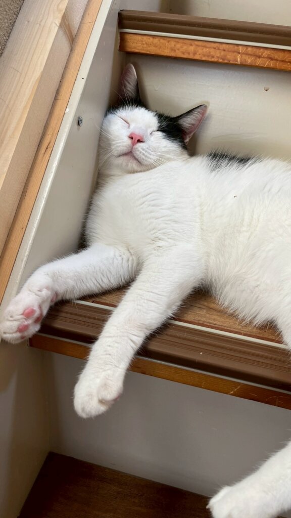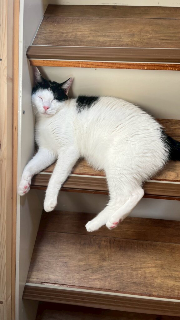 いつもはこんな感じで階段に埋まりながらお昼寝しています☺️