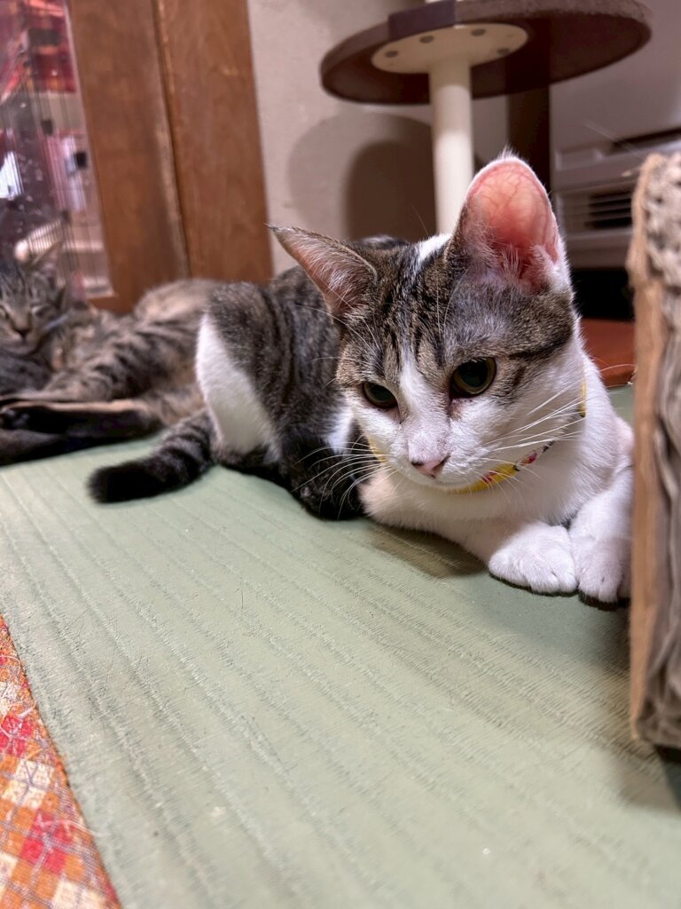 ラブブ【お茶の水】 【お茶の水店】〜ラブブ〜 2026.03.21 (sat) 東京お茶の水店 Share お茶の水店へ戻ってきたラブブちゃん! みんなと遊んでる様子がとても楽しそう…🩷 また頑張って里親様を見つけようね! 前の記事を見る カテゴリ一覧へ戻る ラブブ【お茶の水】 在籍ねこ 性別女の子 年齢1才未満 在籍店東京お茶の水店 毛色キジ白 毛の長さ短毛 人馴れ度ヤンチャ Comment 高齢者が家の中で猫が増えてしまったと所有権放棄で保健所に収容。斜視などあるためネコリパに依頼があり受入れ モココと姉妹 12/1東京🗼に移動してずっとのお家を探します! おすすめの記事 日々のこと ラブブ【お茶の水】 2026.03.15 (sun) ラブブ&モココ トライアルスタート🚗³₃ 日々のこと ラブブ【お茶の水】 2026.02.02 (mon) 【お茶の水】〜ラブブ〜 人気の記事 イベントレポート 2020.04.06 (mon) 緊急募集!ネコリパブリック運営継続月額サポーター!あなたのちょっとで猫助け! 猫コラム 2020.03.01 (sun) りんご猫とは、、 猫コラム 2021.06.07 (mon) りんご猫とは、、 猫エイズについて